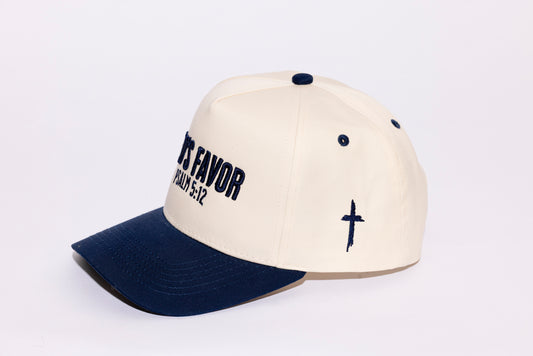 WORTHY JOURNEY CREAM AND NAVY BLUE PLAIN CURVE 5PANEL SNAPBACK HAT