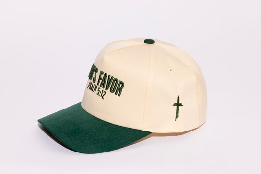 WORTHY JOURNEY CREAM AND DARK GREEN PLAIN CURVE 5PANEL SNAPBACK HAT