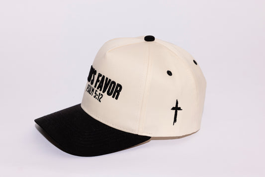 WORTHY JOURNEY CREAM AND BLACK PLAIN CURVE 5PANEL SNAPBACK HAT